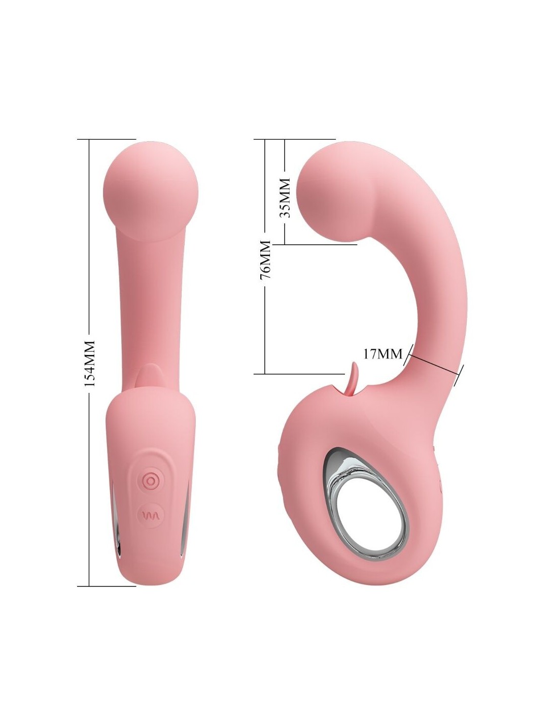 Realizzato in silicone medico di alta qualità, questo elegante massaggiatore offre 10 modalità di vibrazione e 5 tipi di leccata, pensati per regalarti una doppia stimolazione intensa e appagante. La piccola lingua è perfetta per stimolare delicatamente la tua preziosa zona, mentre l’asta trasmette vibrazioni potenti e coinvolgenti. Grazie al pratico cavo USB, potrai ricaricarlo facilmente e portarlo sempre con te, ovunque tu voglia.