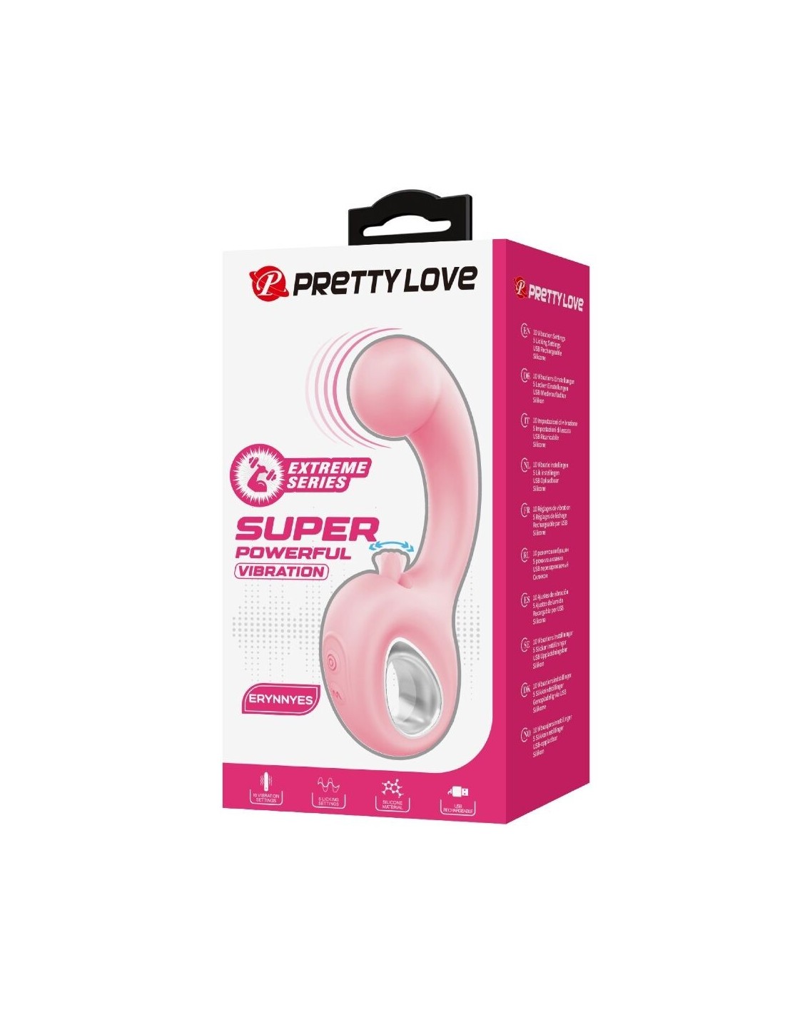 PRETTY LOVE - ERYNNYES VIBRATORE PUNTO G + STIMOLATORE CLITORIDEO 10 VIBRAZIONI ROSA