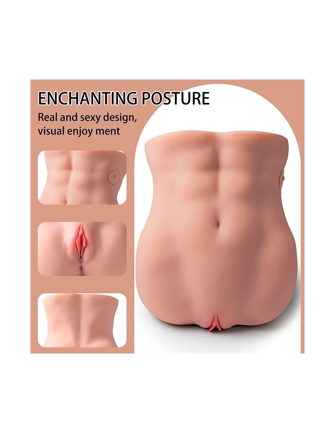 - Canale vaginale strutturato avanzato: pieghe, creste e noduli interni simulano la sensazione di una penetrazione reale.