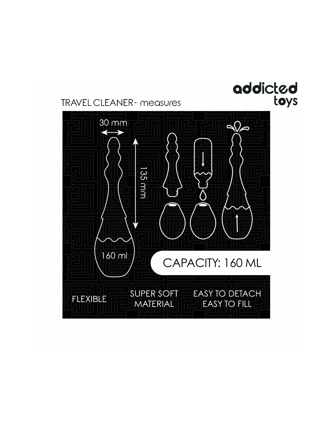 Il detergente da viaggio Addicted Toys Model 4 è un39ottima opzione per chi desidera mantenere i propri sex toy completamente igienizzati durante i viaggi o quando è lontano da casa. Con un design compatto e pratico, questo detergente assicura una pulizia rapida ed efficace, garantendo un39esperienza utente sicura e piacevole.