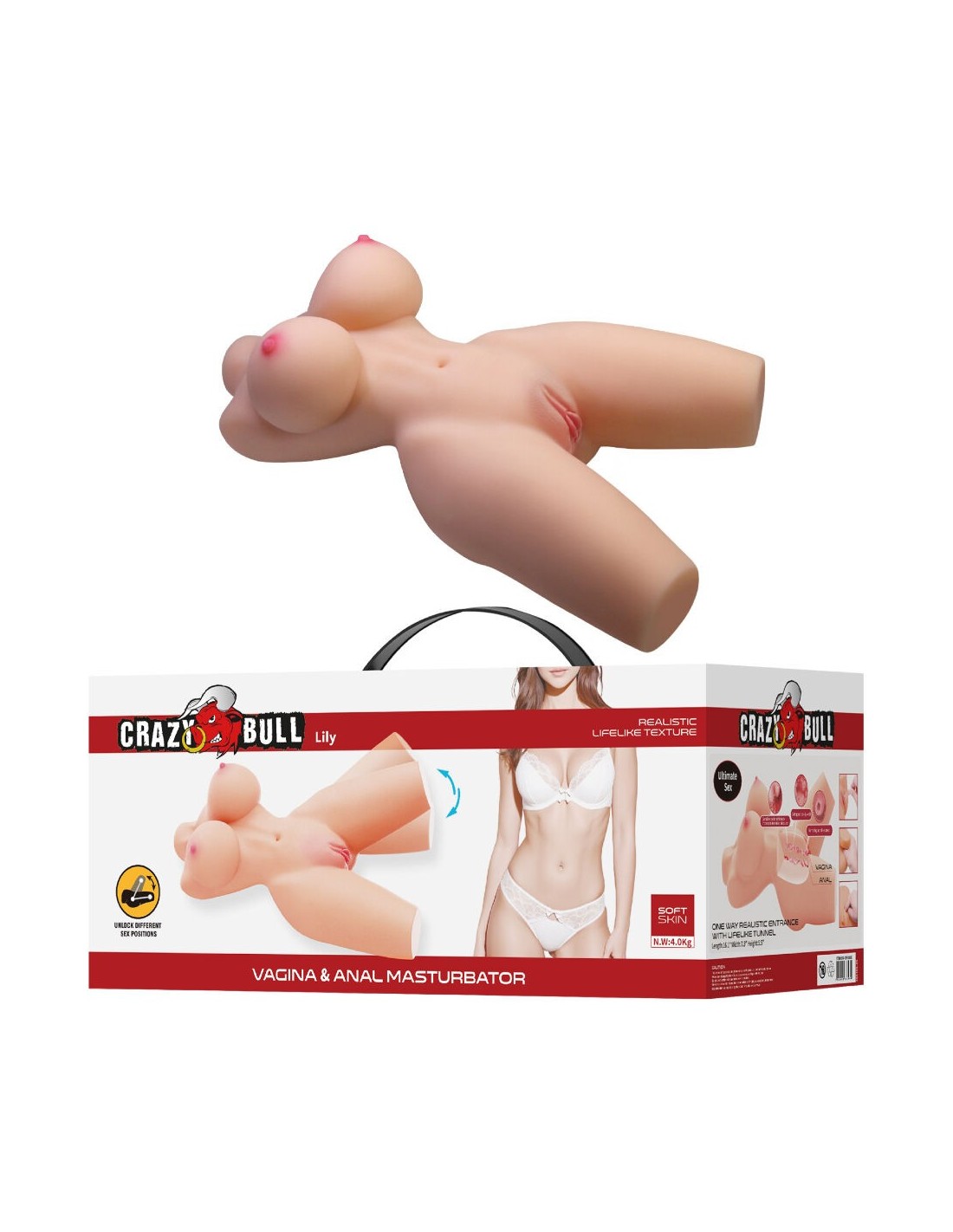 El diseño de Lily representa a una mujer madura con curvas irresistibles, que destacan por su feminidad y sensualidad. Sus grandes pechos redondos, su trasero firme y elástico y su cintura delgada crean una silueta perfecta que invita a disfrutar de cada detalle. La estructura interna está cuidadosamente esculpida para permitir que sus piernas se deslicen y se adapten a distintas posturas, brindando la posibilidad de explorar diversas posiciones de manera realista y cómoda. Fabricado en TPR de alta calidad, este masturbador ofrece una textura suave y agradable al tacto, totalmente segura para el cuerpo. Sus dos orificios independientes (vaginal y anal) han sido diseñados anatómicamente para proporcionar una estimulación intensa y realista, con una sensación fisiológica auténtica que imita fielmente la intimidad femenina.