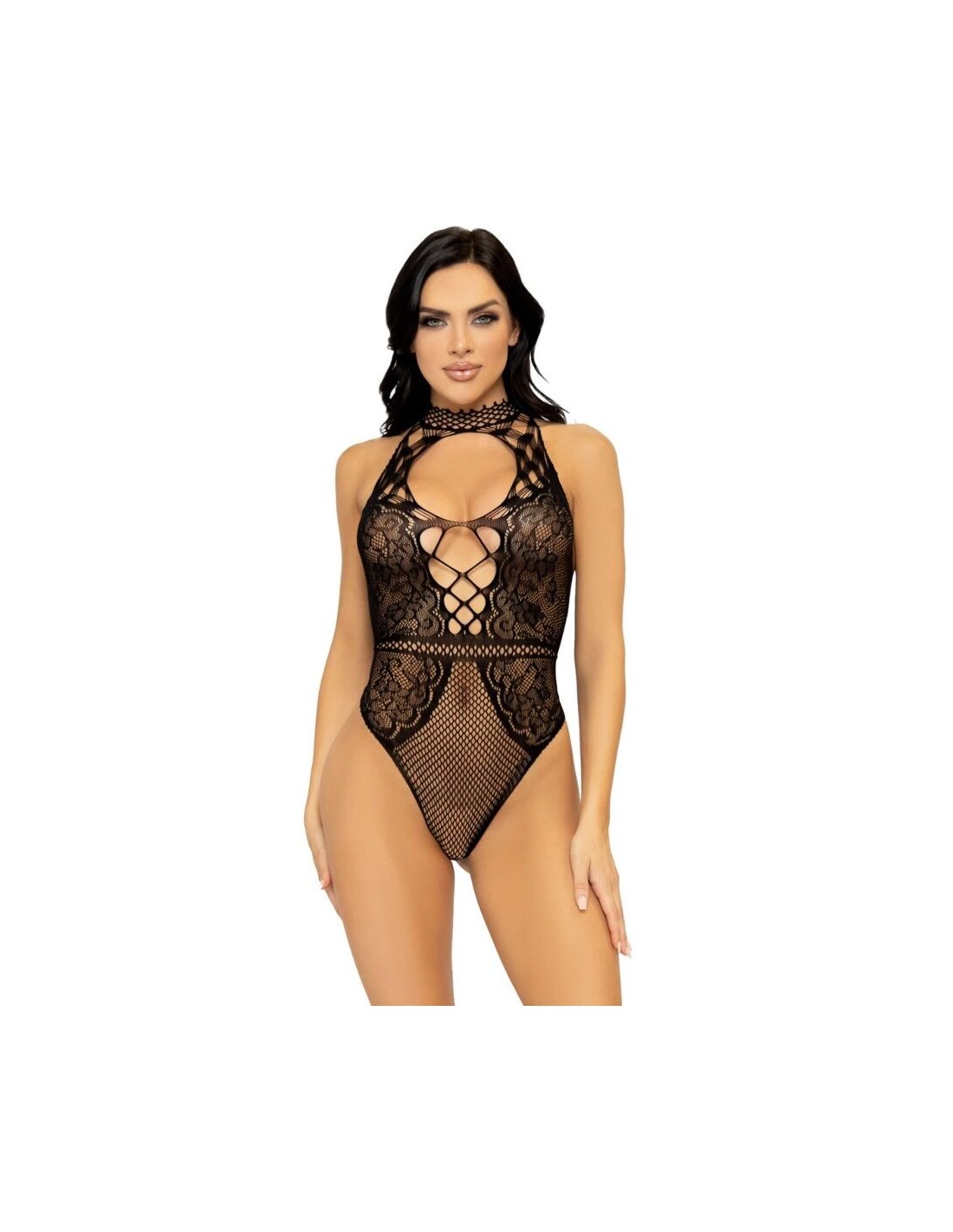 LEG AVENUE - BODY CON APERTURA A CHIAVE IN RETE E PIZZO TAGLIA UNICA