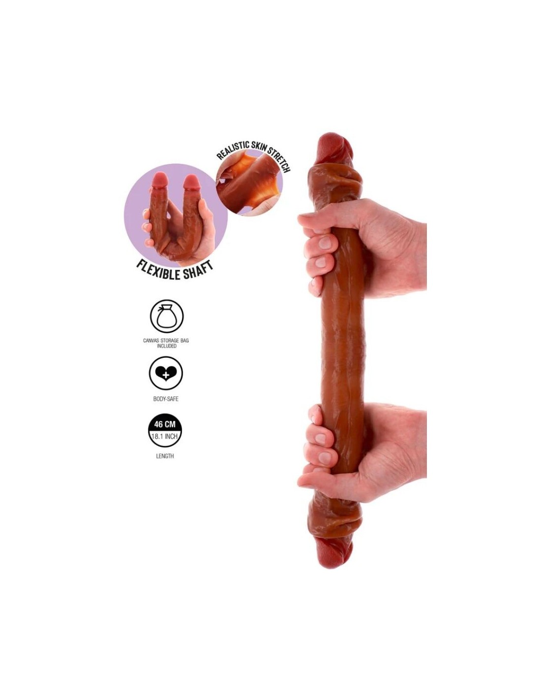 Vivi un realismo senza pari con la collezione Get Real Skin di ToyJoy. Questo dildo in silicone a doppia estremità con prepuzio è dotato di un prepuzio mobile che offre una sensazione eccezionalmente realistica. Grazie all39innovativa tecnologia a doppia densità, la morbida pelle esterna scivola dolcemente su un nucleo interno più solido, offrendo una sensazione naturale e realistica. Realizzato in silicone liquido di alta qualità, questo dildo doppio da 46 cm offre un39elasticità cutanea autentica e un prepuzio mobile, rendendolo un39alternativa eccezionale a un pene reale. Sicuro per il corpo e progettato per un piacere versatile, è perfetto per il gioco da soli o per esperienze di coppia. Include anche una pratica custodia in tela per una conservazione discreta. Preparati alla realtà con questo dildo doppio in silicone da 46 cm con prepuzio!