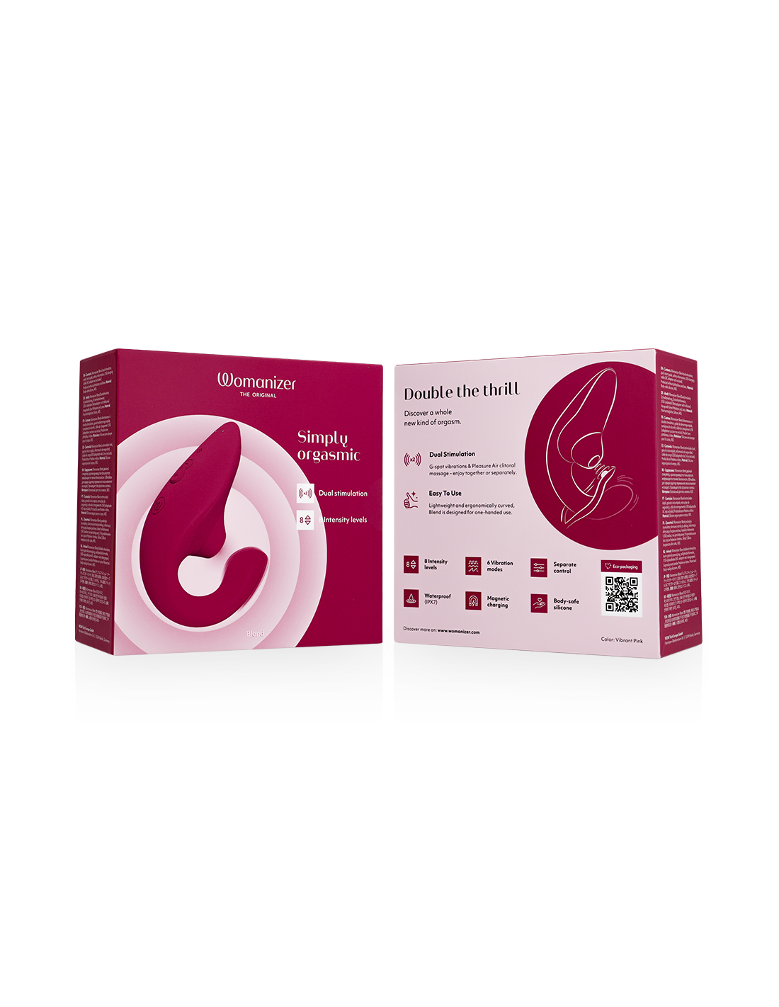 Controlli motore separati : Womanizer Blend è dotato di due motori separati, così puoi goderti il massaggio clitorideo e le vibrazioni del punto G insieme o separatamente, per una sessione di piacere completamente personalizzata.