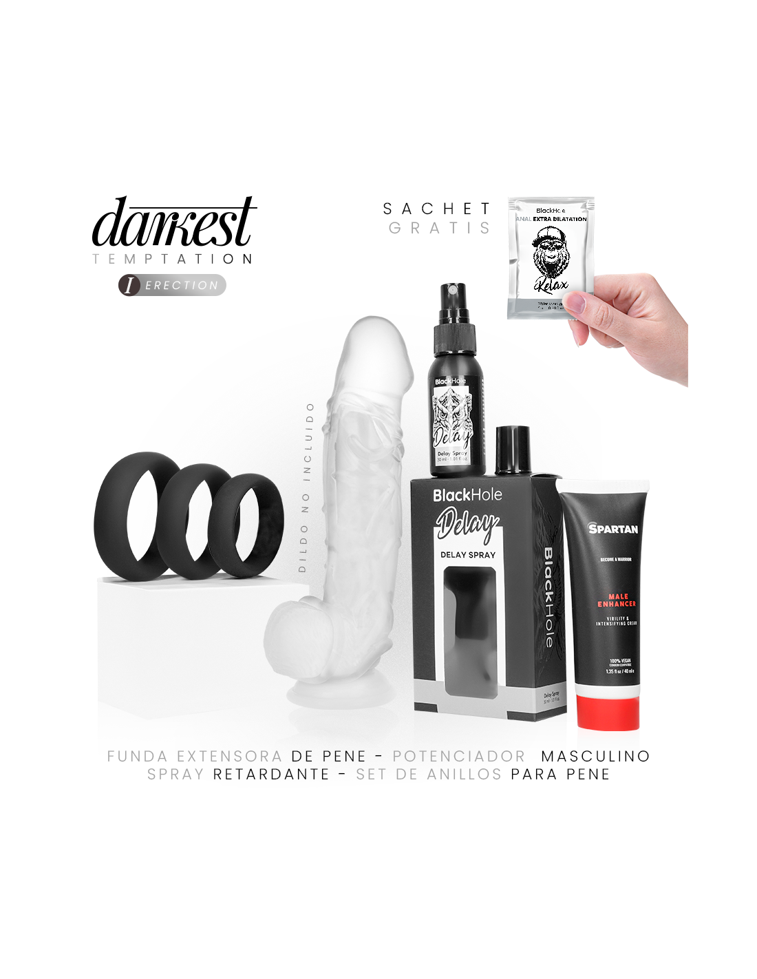 DARKEST TEMPTATION 1: ERECTION è un pacchetto progettato per migliorare l39erezione, migliorare le prestazioni e prolungare il piacere. Combina stimolazione fisica, supporto cosmetico e accessori funzionali per un39esperienza più intensa e controllata.
