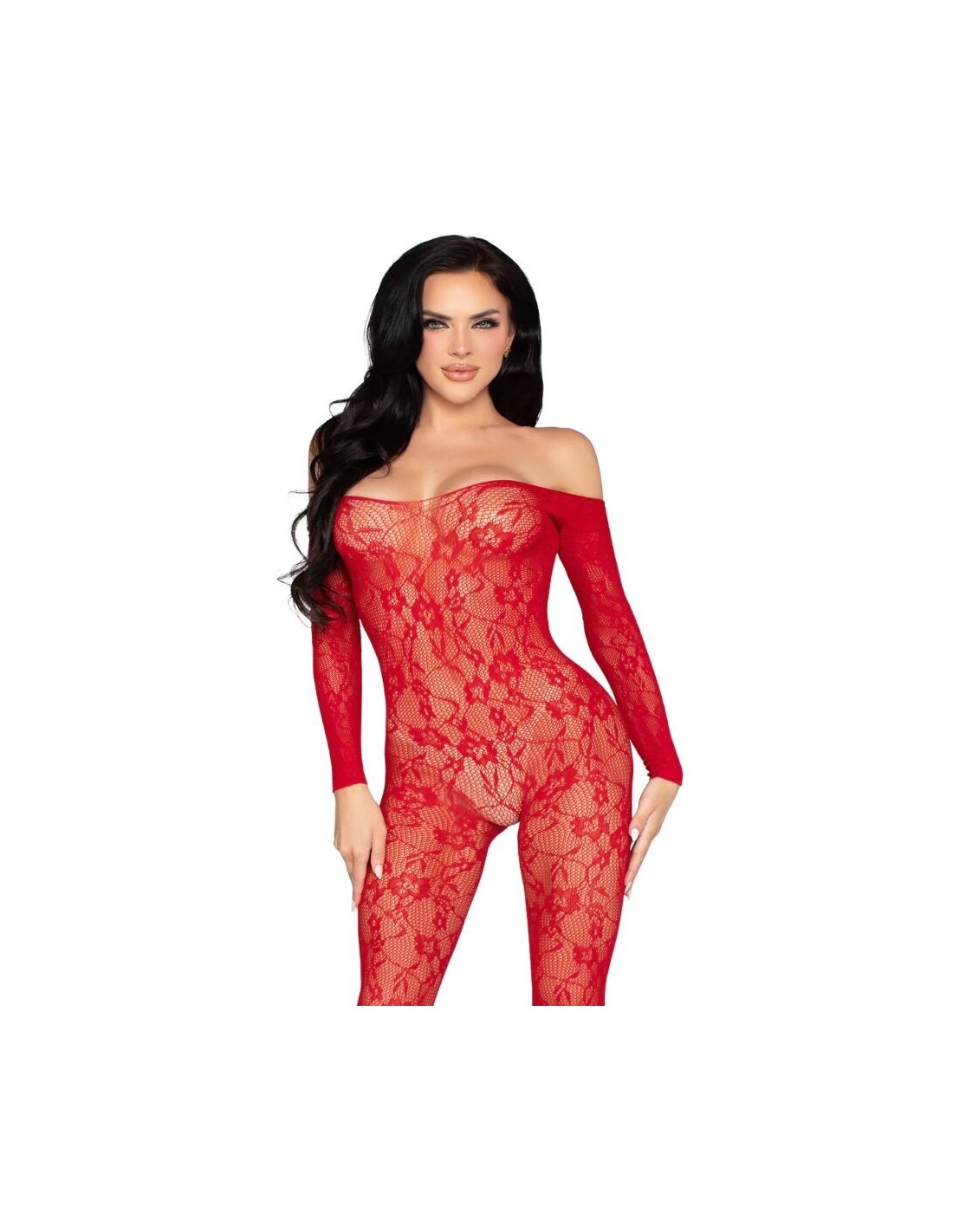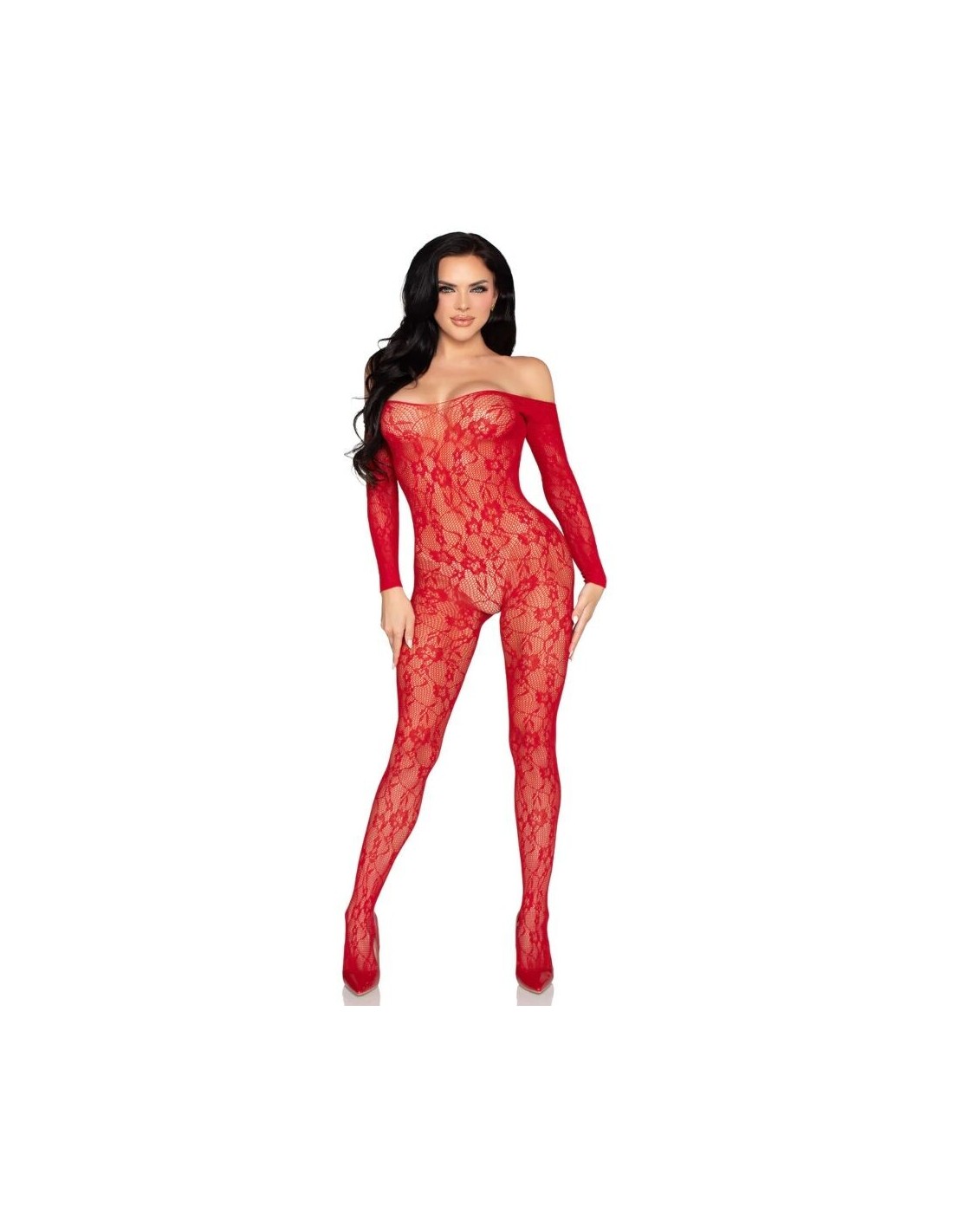 Lasciati conquistare da questo bodystocking in pizzo floreale super elasticizzato. Questo modello avvolge il corpo, esaltando i tuoi lineamenti dalla testa ai piedi. Grazie alla scollatura, può essere indossato sopra le spalle o in stile bardot. Questo bodystocking non ha apertura sul cavallo.
