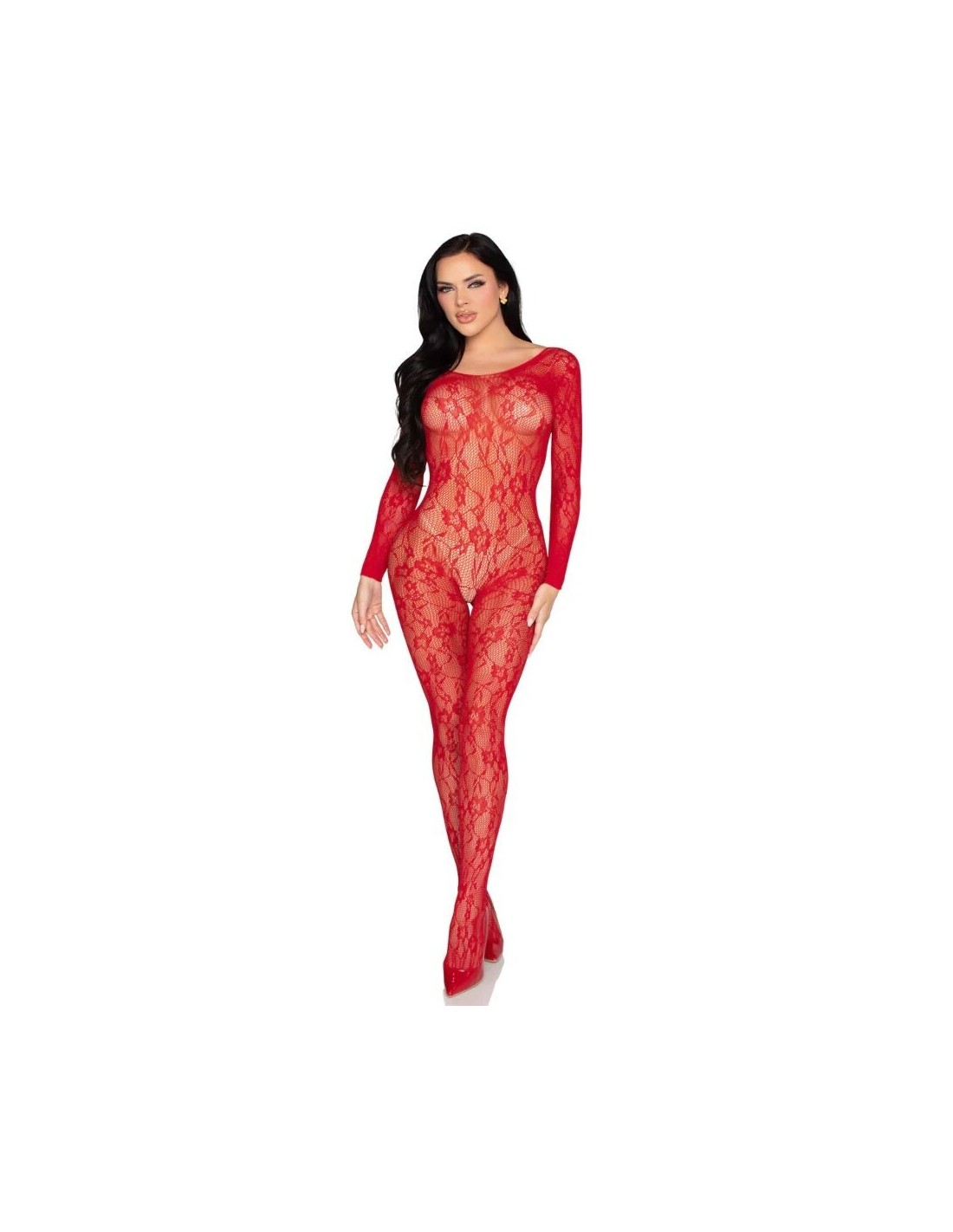 LEG AVENUE - 89366 BODYSTOCKING IN PIZZO ROSSO - TAGLIA UNICA