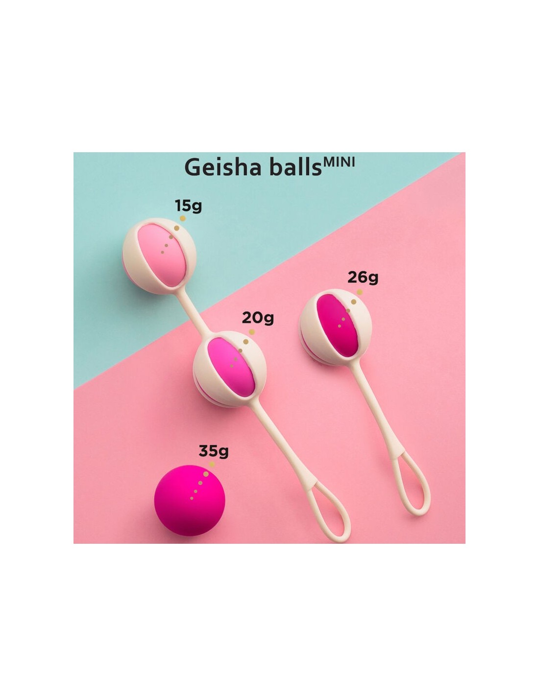 Un set di 4 palline Geisha di diversi colori e pesi, pensato per allenare il pavimento pelvico in modo efficace e personalizzato. Include due manicotti in silicone dotati di strisce flessibili che facilitano la rimozione, garantendo comodità durante l’uso. Potrai combinare le palline come preferisci, adattando l’allenamento al tuo ritmo e alle tue esigenze.