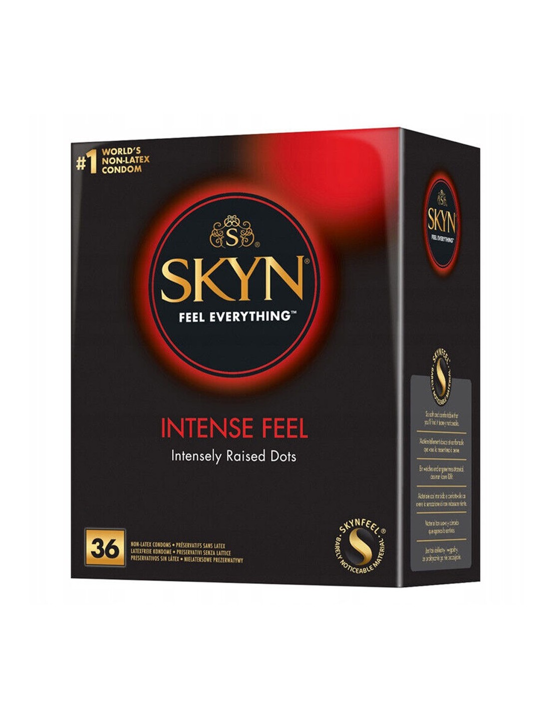 Skyn Intense Feel, sono preservativi realizzati in Poliisoprene, un materiale anallergico e privo di lattice, estremamente elastico e confortevole.